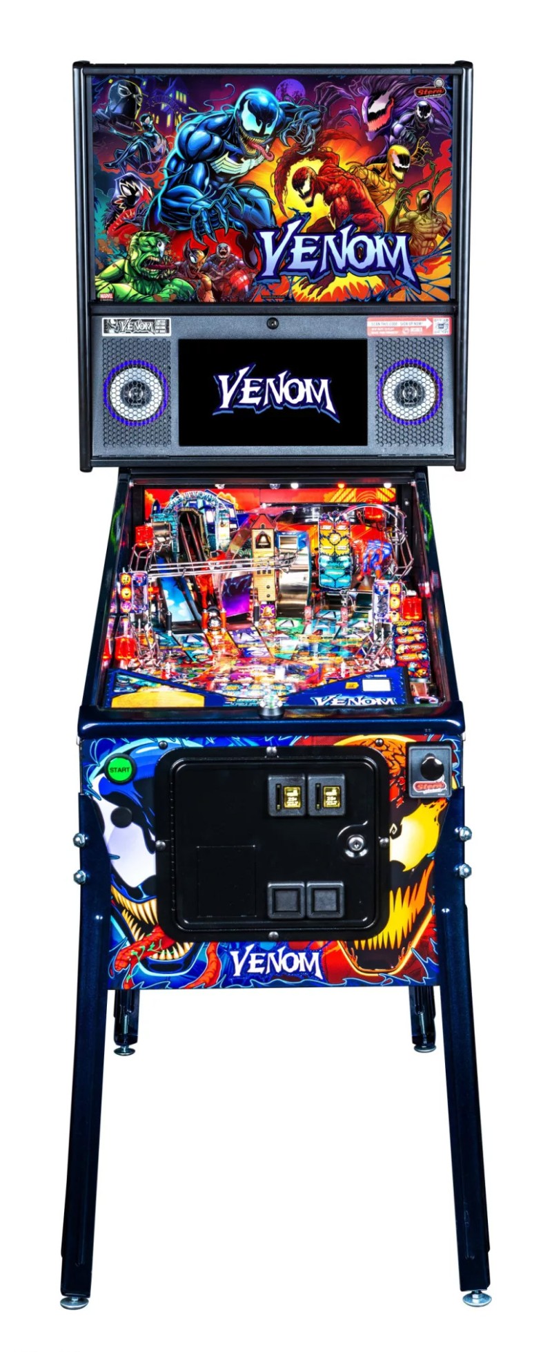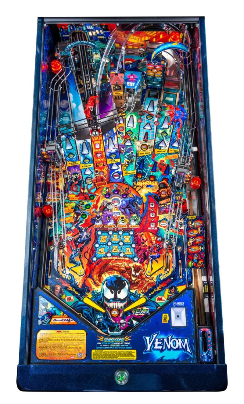 Les flippers Venom Limited Edition incluent le système primé Insider Connected™ de Stern, qui permet aux joueurs d’interagir avec le jeu et un réseau mondial de joueurs de différentes manières.
